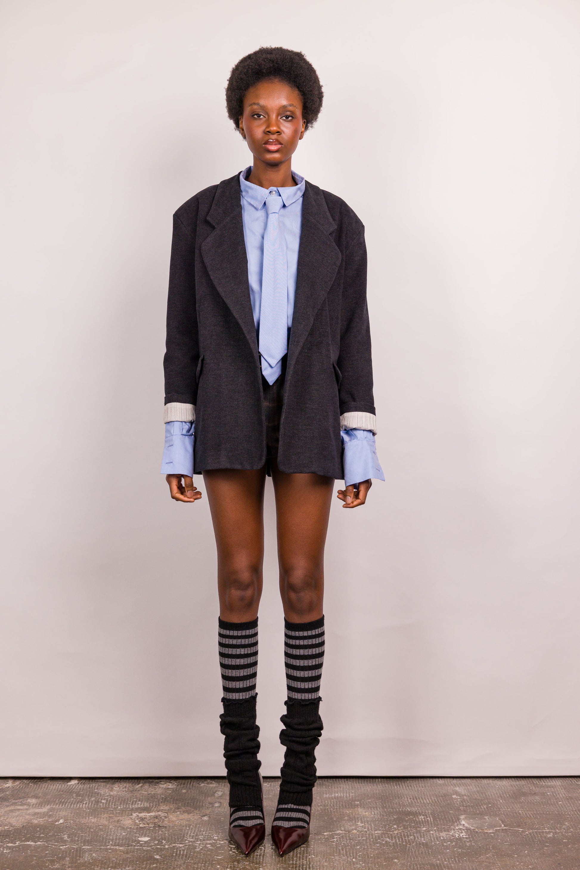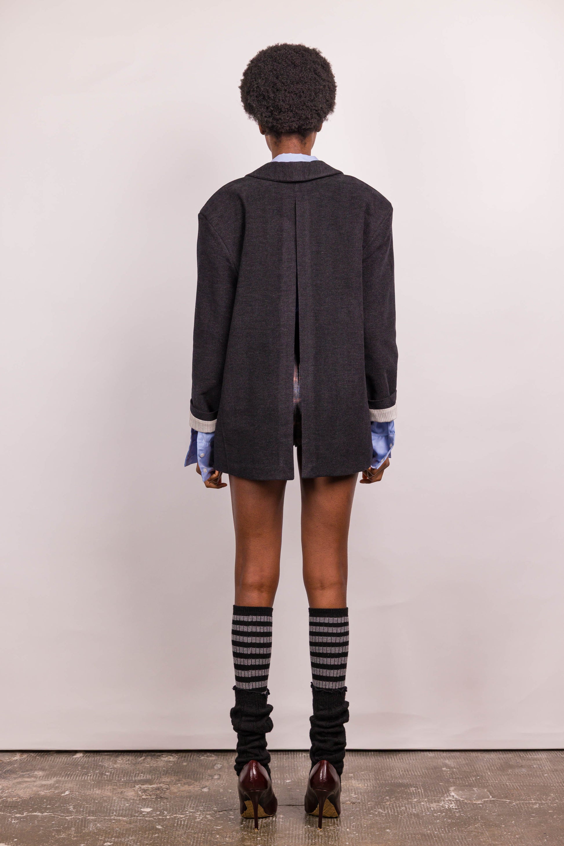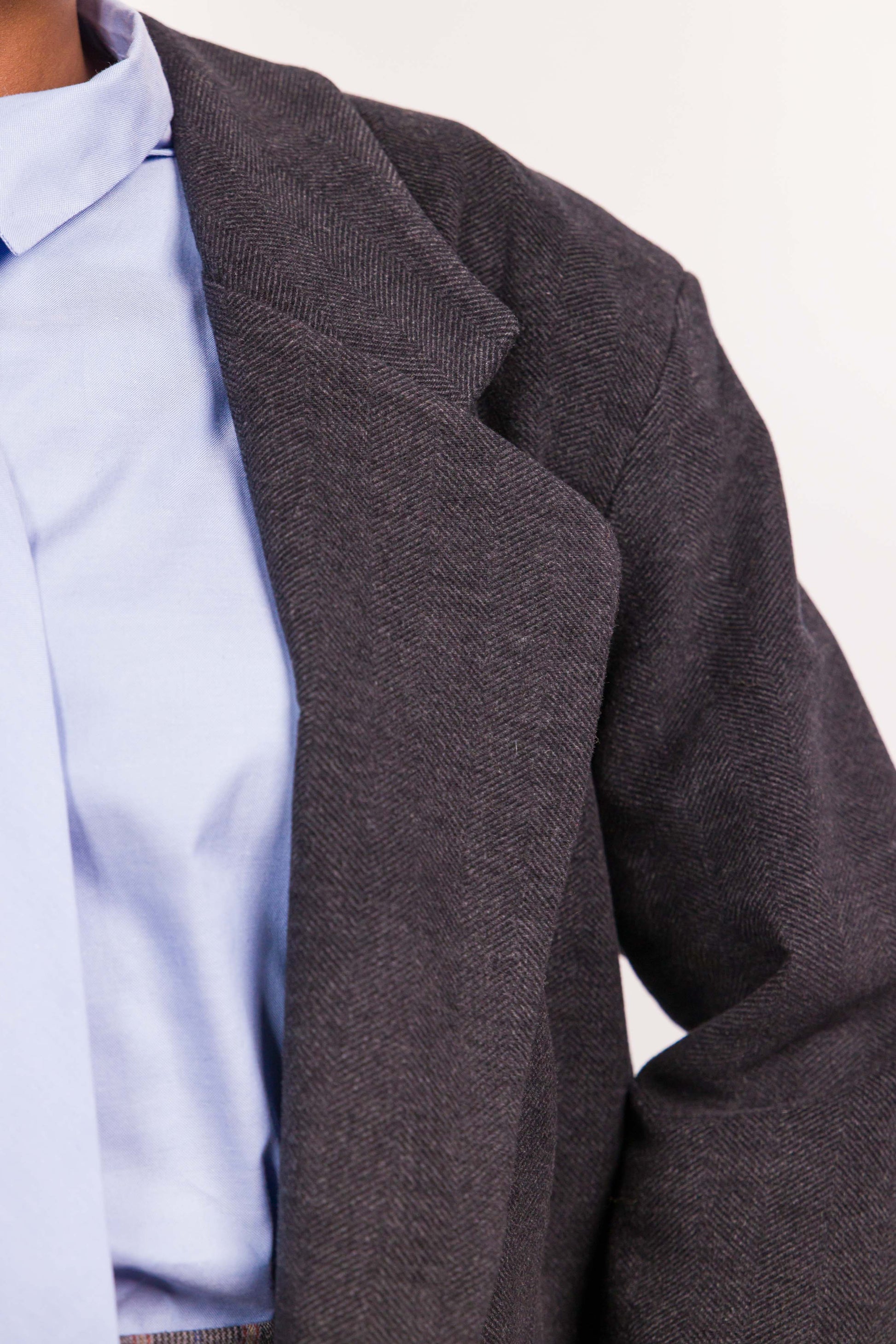 Un blazer aux allures classiques, bousculé par un twist inattendu : l’ouverture dans le dos. Johnny, c’est le tailoring version Marieve, une coupe droite, un chevron affirmé, une doublure à rayures et une allure décontractée, libre, assumée.
