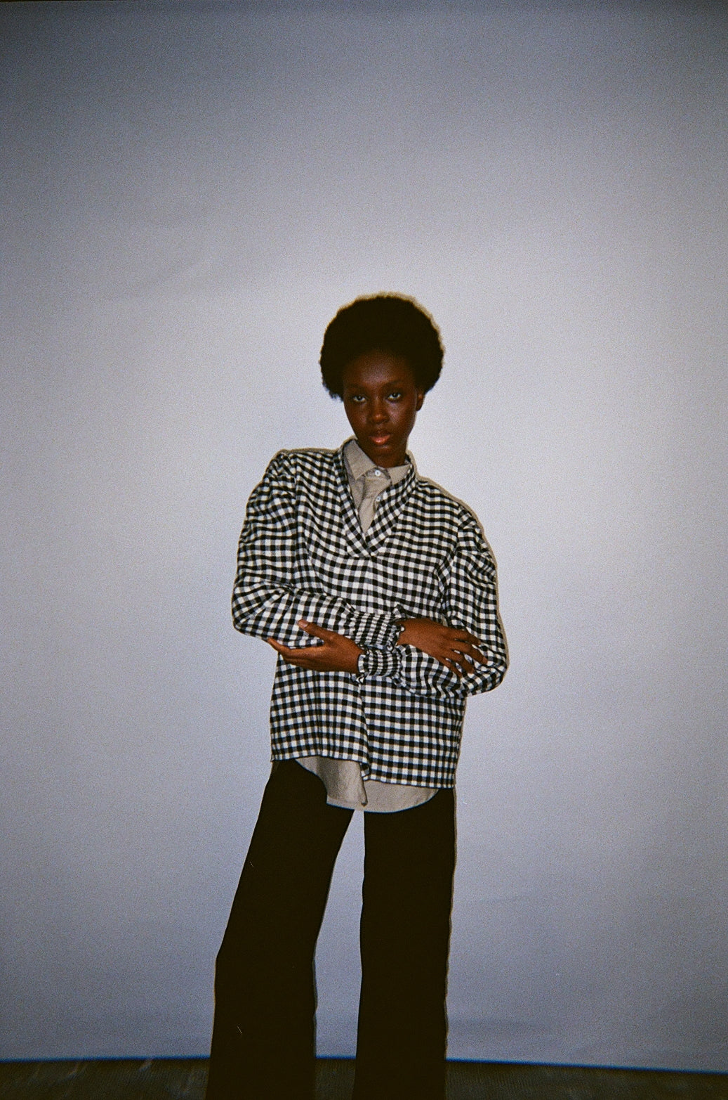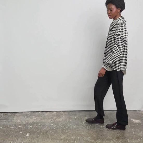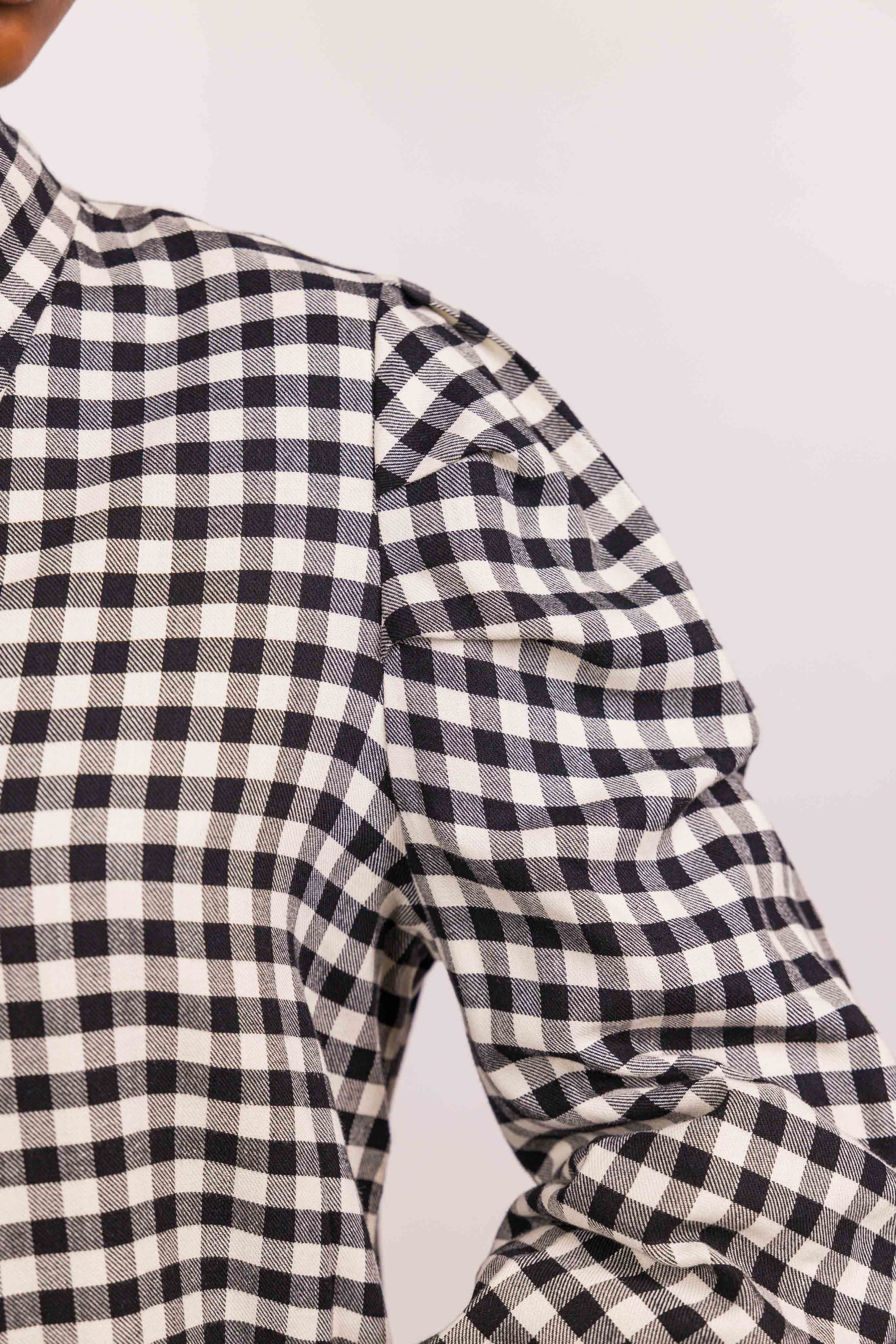 Pièce forte du vestiaire Marieve, cette blouse joue avec les codes classiques pour mieux les détourner. Son carreau vichy noir et blanc apporte une allure graphique et intemporelle, tandis que la coupe légèrement ample assure un porté fluide et confortable.