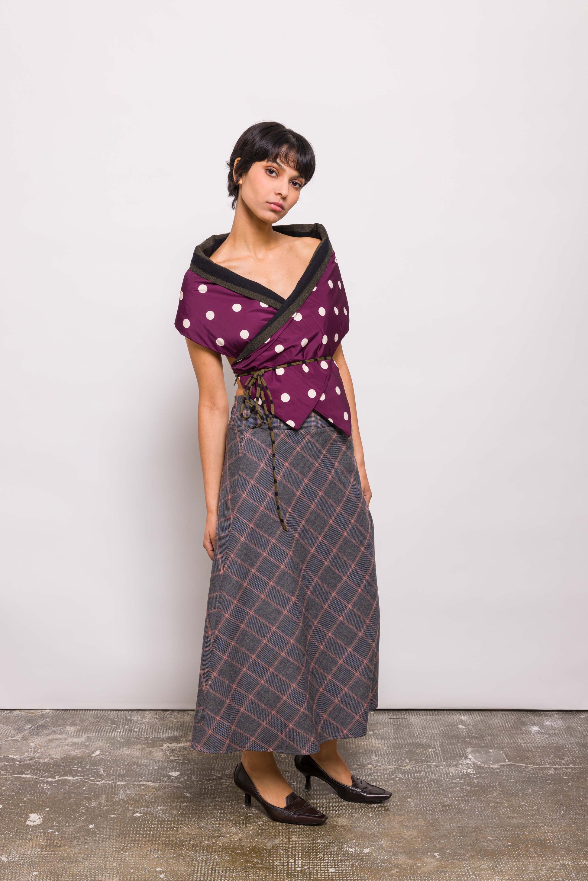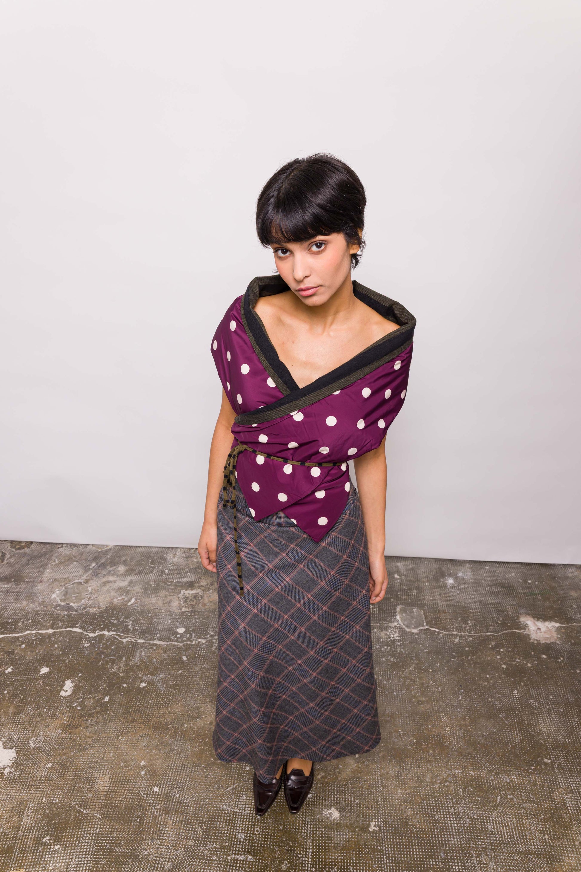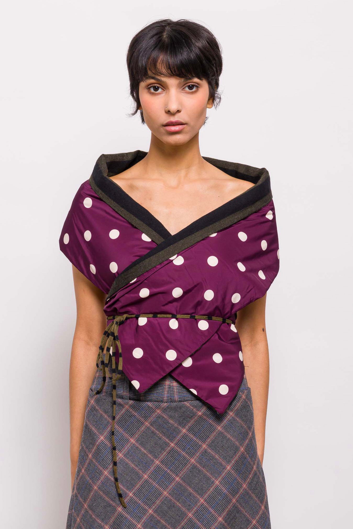 Étole matelassée et doublée, pensée comme un accessoire versatile. Grâce à ses deux liens intégrés, elle se porte de multiples façons : croisée devant, ceinturée façon cache-cœur, nouée sur l’épaule ou simplement drapée autour du cou. Chaque modèle est réalisé dans un mix de tissus soigneusement sélectionnés : lainage graphique, popeline fleurie, pois ou rayures — pour un jeu de textures et d’imprimés signature MARIEVE. Une pièce d’exception, à la fois fonctionnelle et expressive, qui sublime les looks les plus simples comme les plus construits.