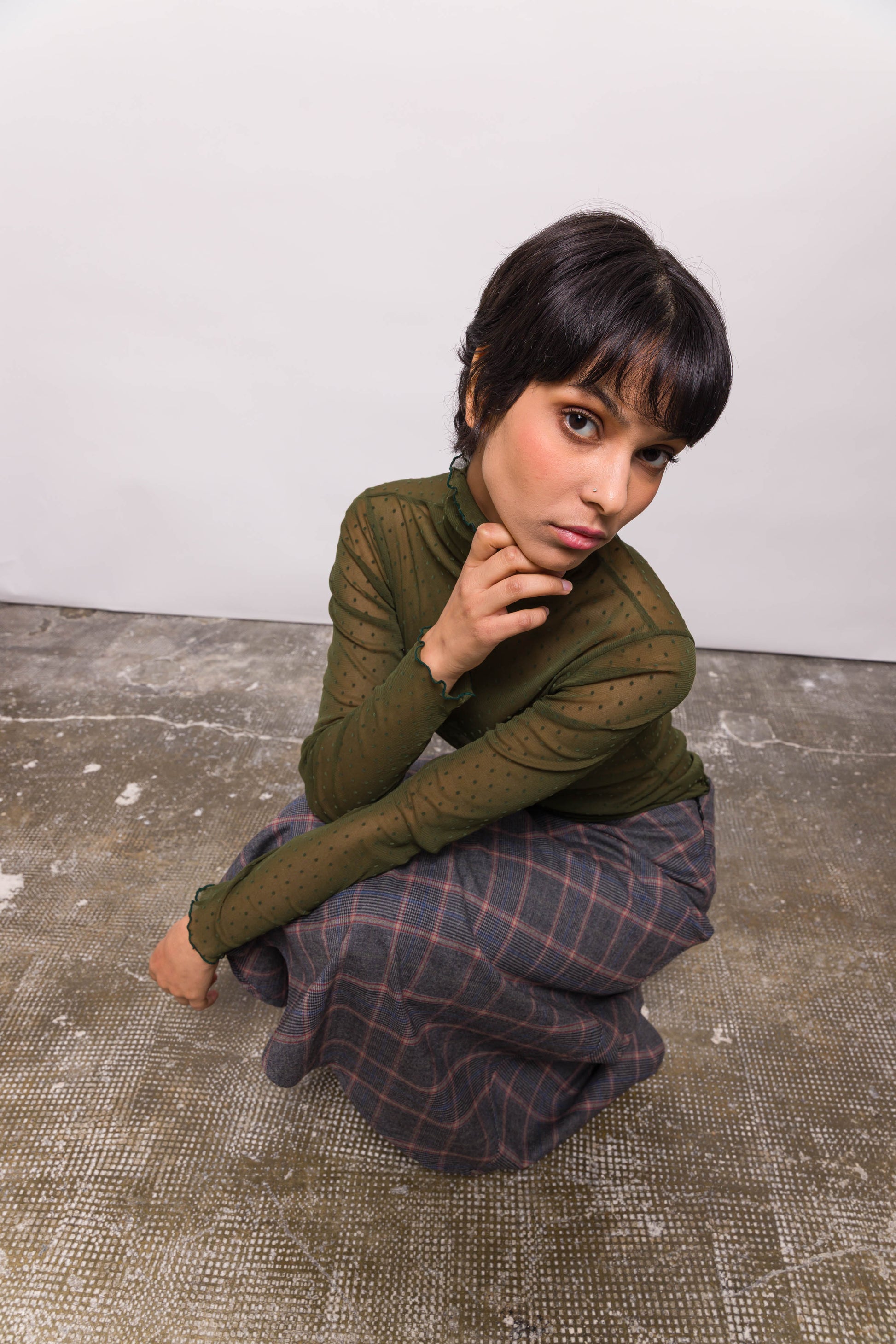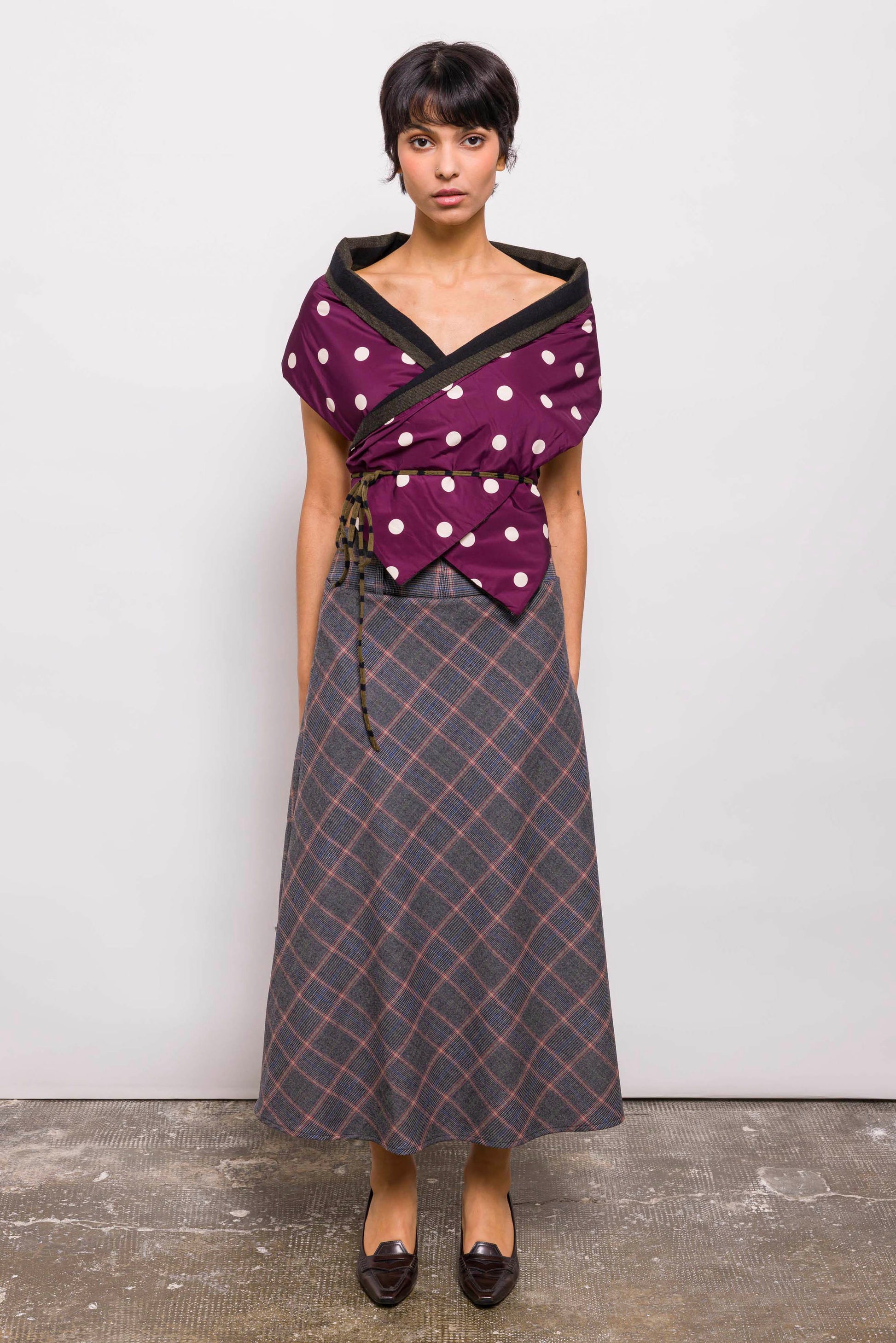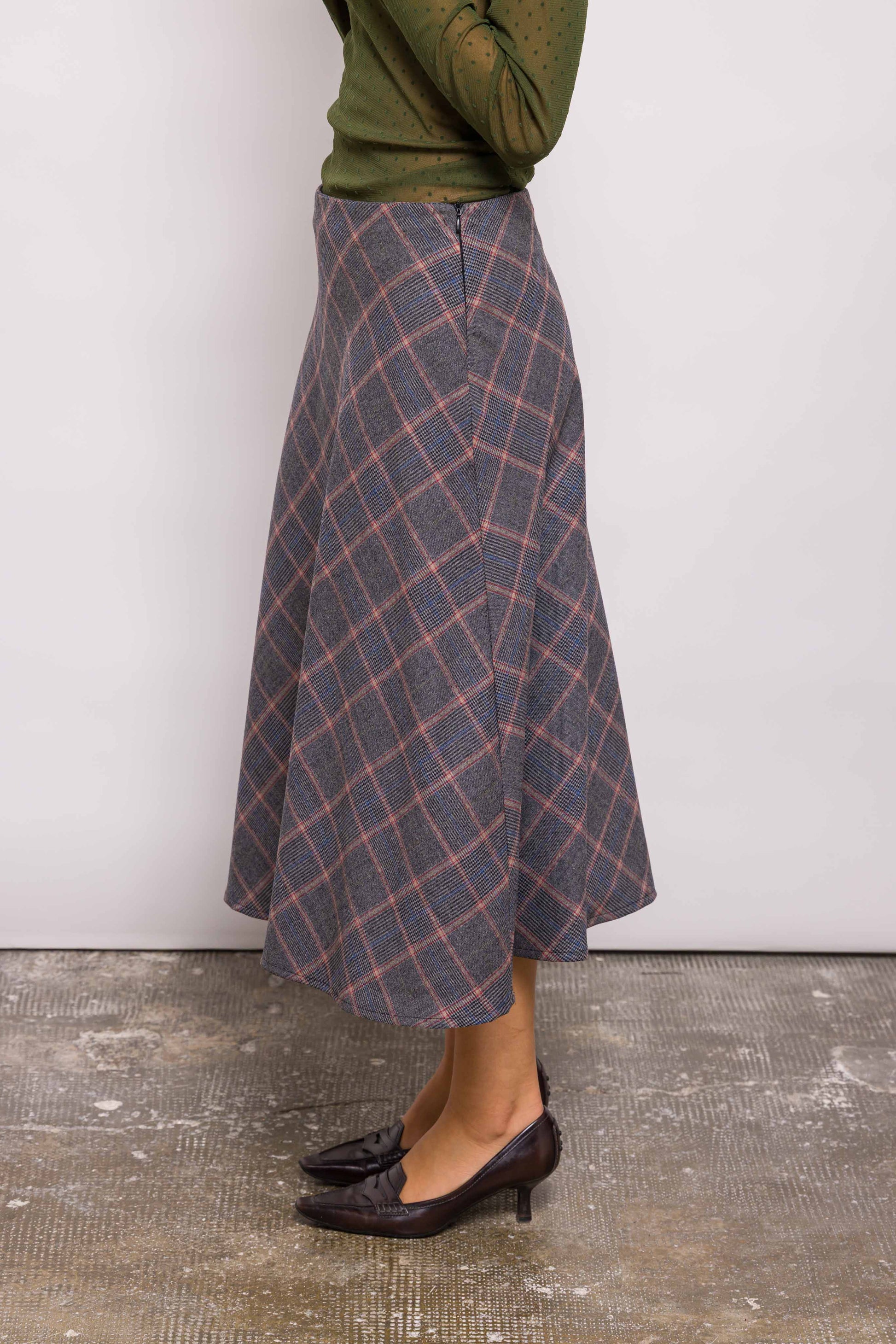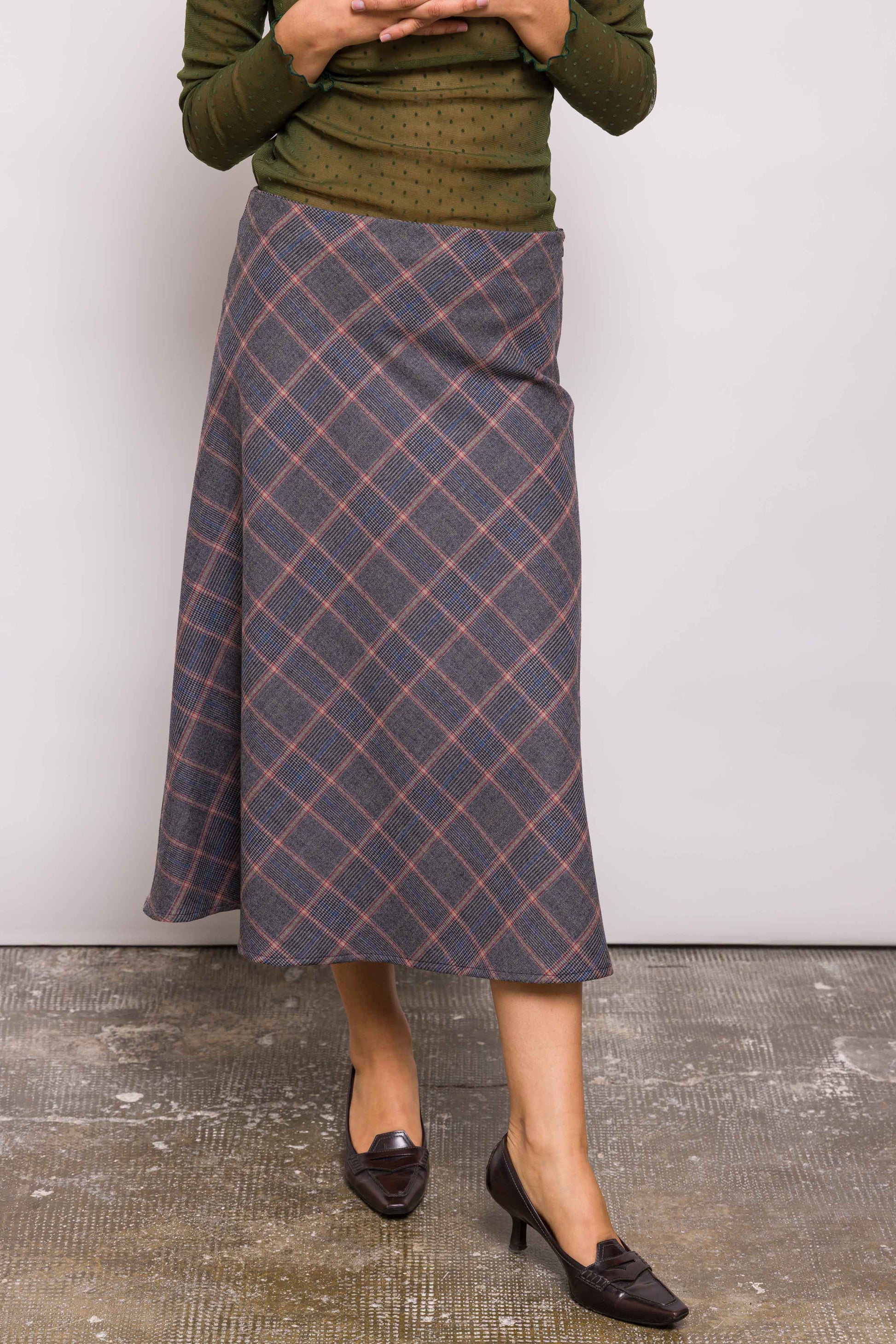 Jupe midi en lainage prince de galles, coupée plein biais pour un tombé fluide et une belle amplitude. Sa coupe souligne la silhouette sans la mouler. Élégante mais facile à vivre, elle se mixe à l’infini.. Le biais, c’est magique : il donne ce tombé dansant sans ajout de volume. Kehlia est une base forte pour toutes les silhouettes.