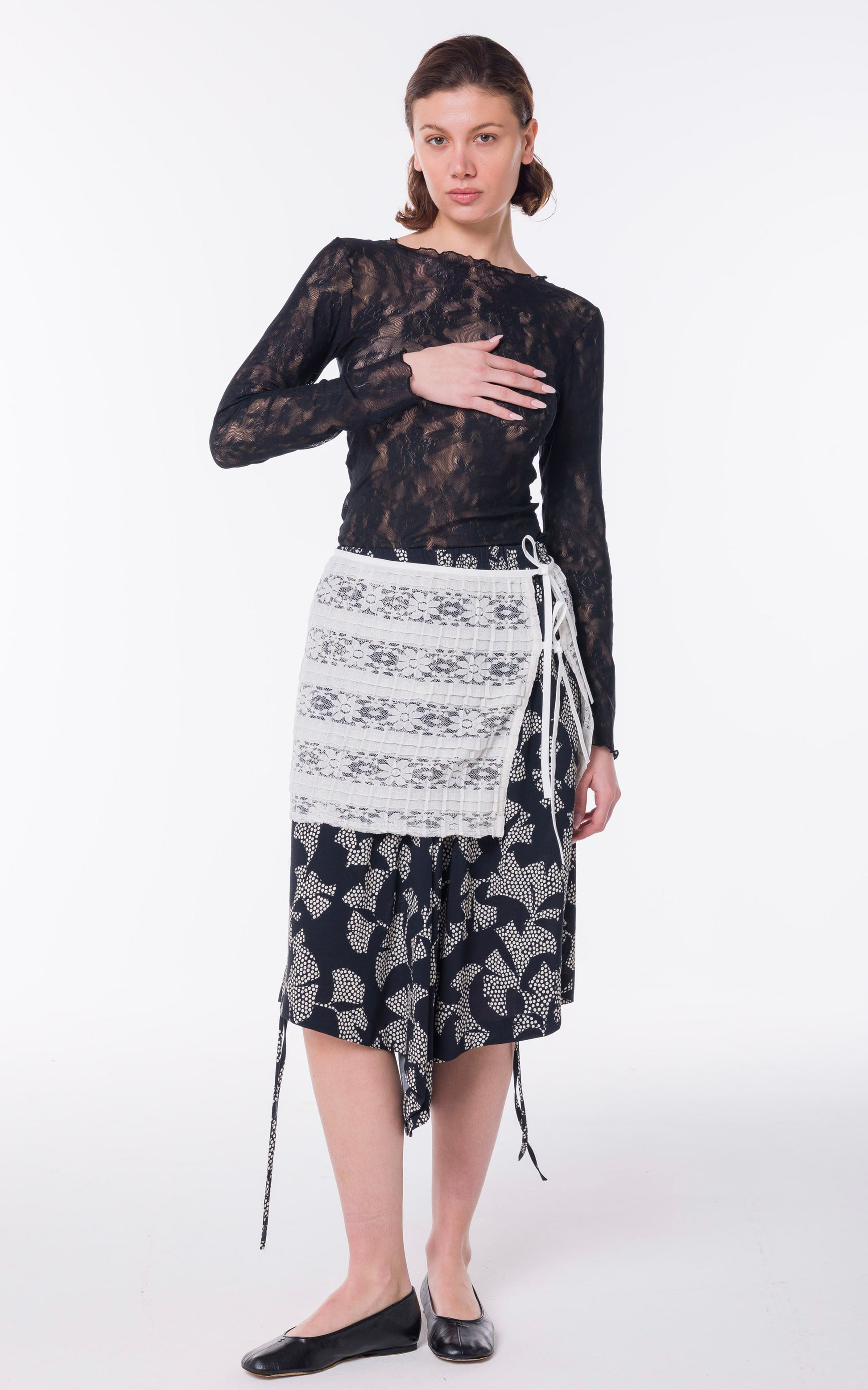 Les liens longs à nouer sur le côté permettent d’ajuster la taille et de jouer avec le volume.
