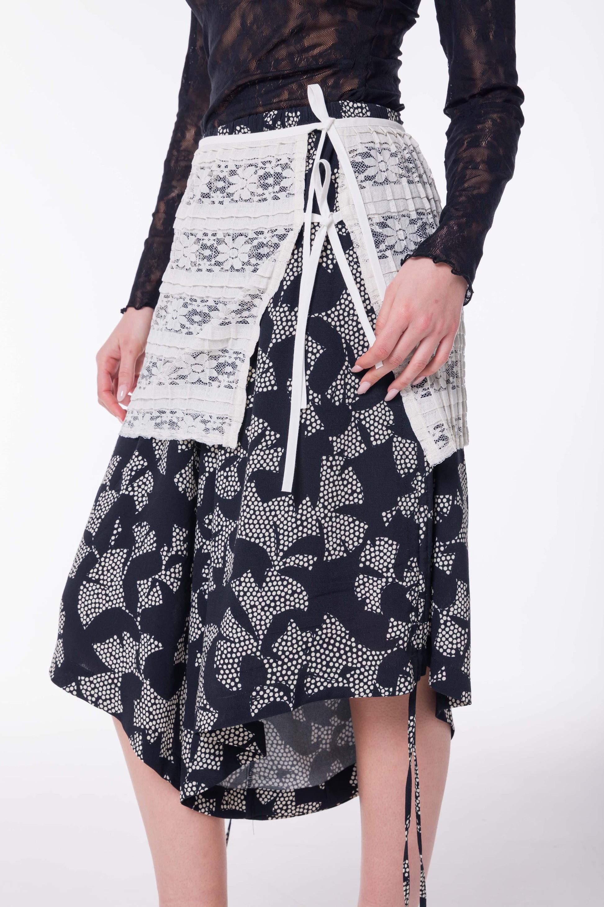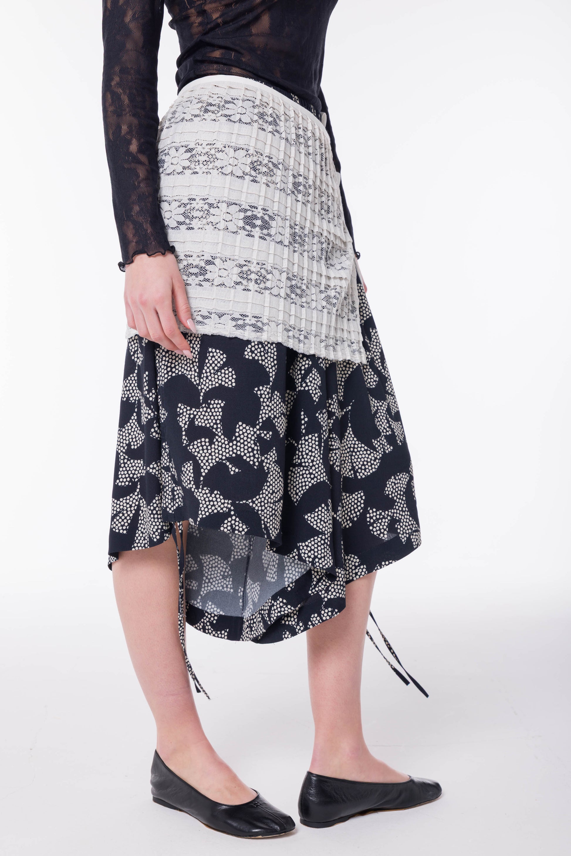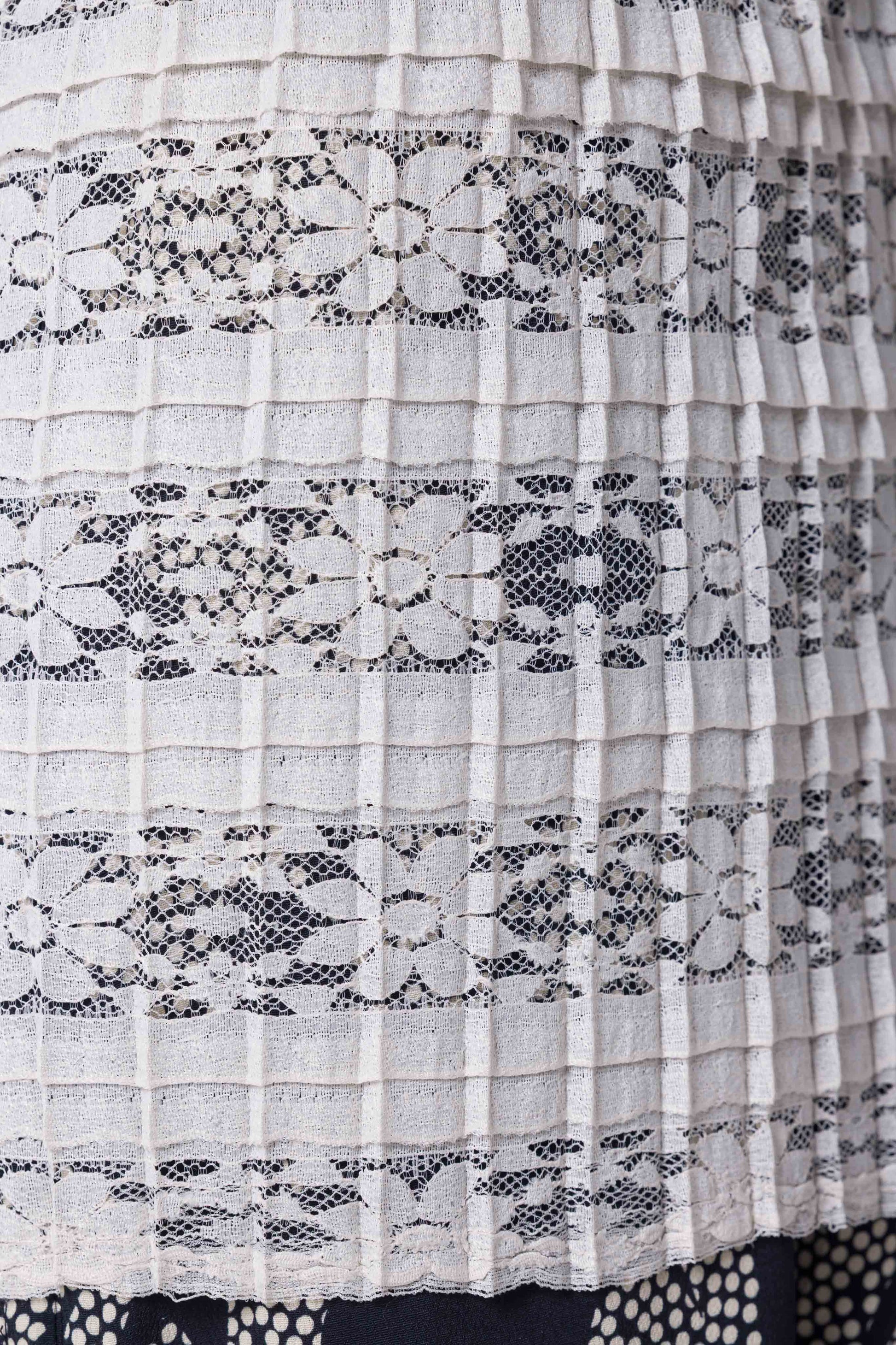 La dentelle blanche plissée travaillée en bandes horizontales apporte relief et lumière.