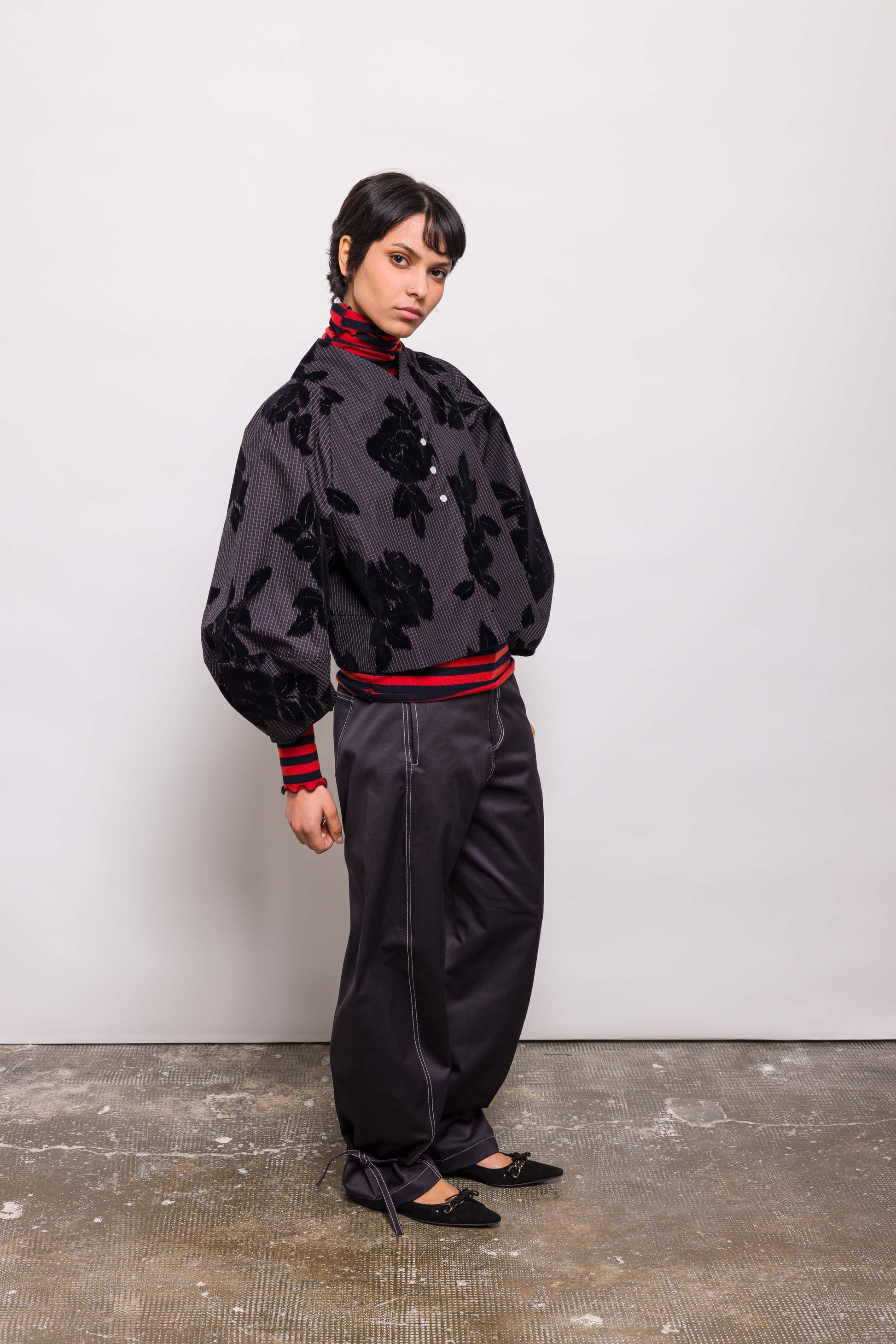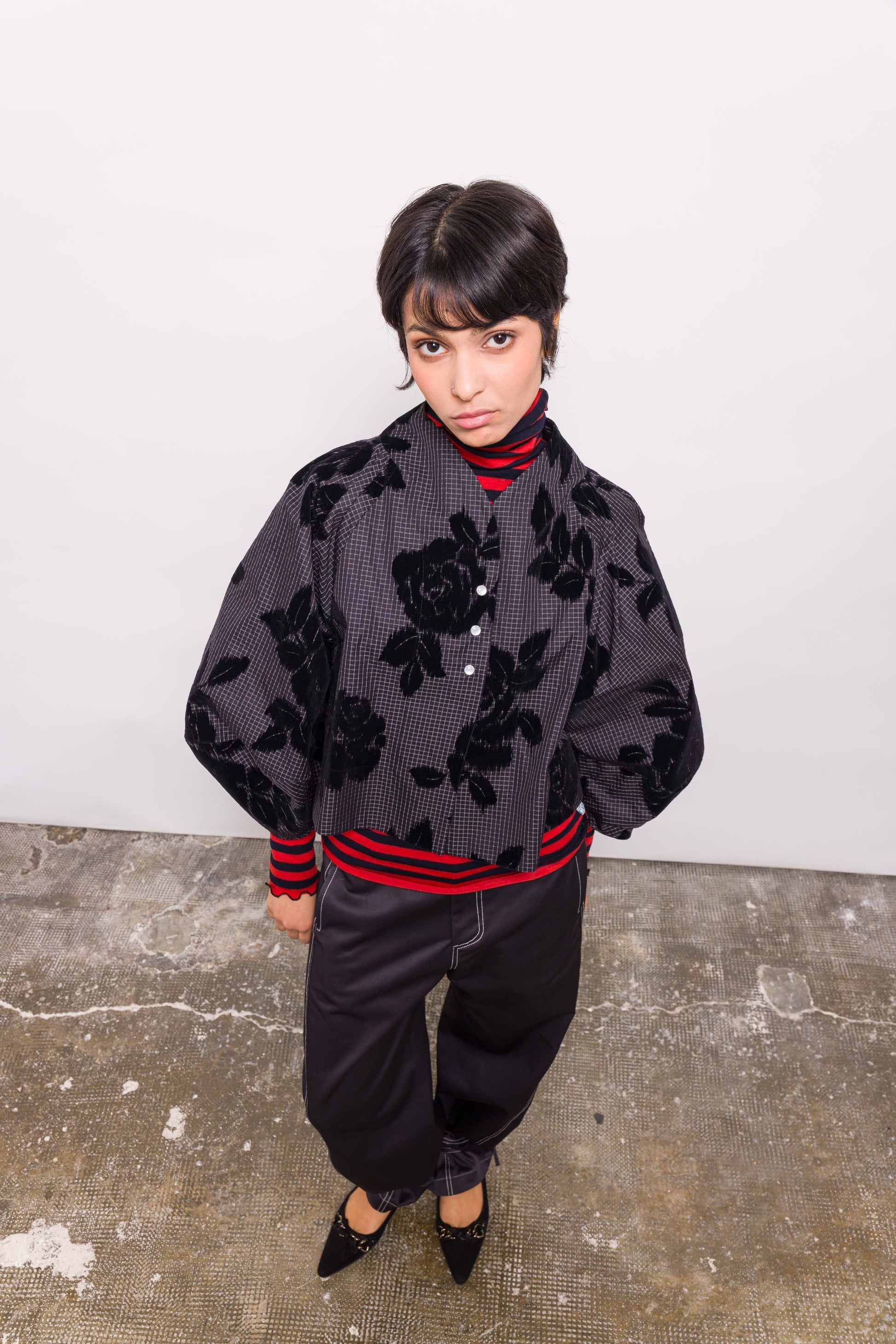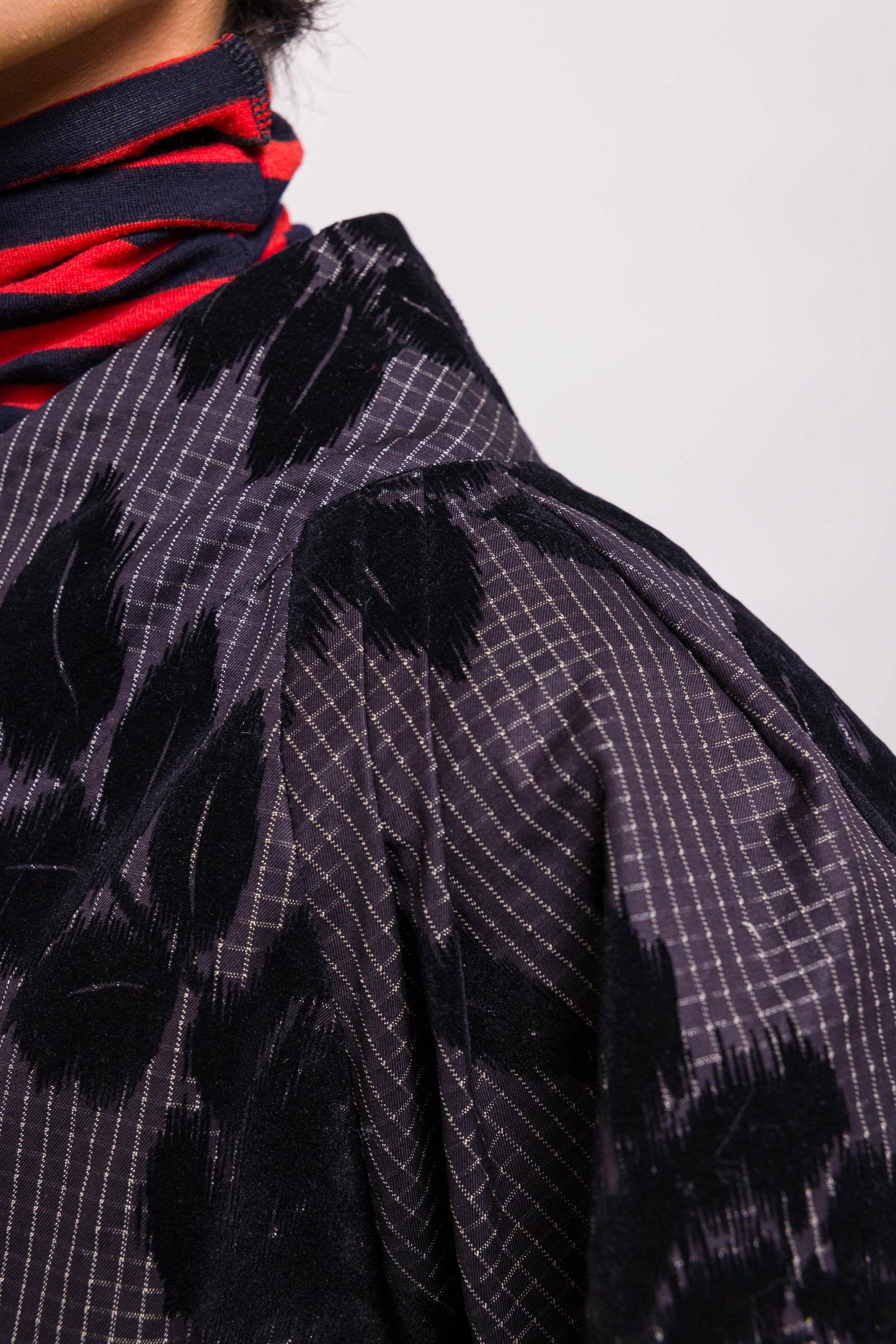 La veste Mathilde Marieve, courte et à manches oversized apporte un look ultra tendance. Pièce créateur par excellence, elle allie un joli jeu de plis et de pinces apporte une structure et un volume particulier à cette veste. Son encolure près du cou et son jacquard donnent de l'allure, 3 pressions nacrées permettent la fermeture.