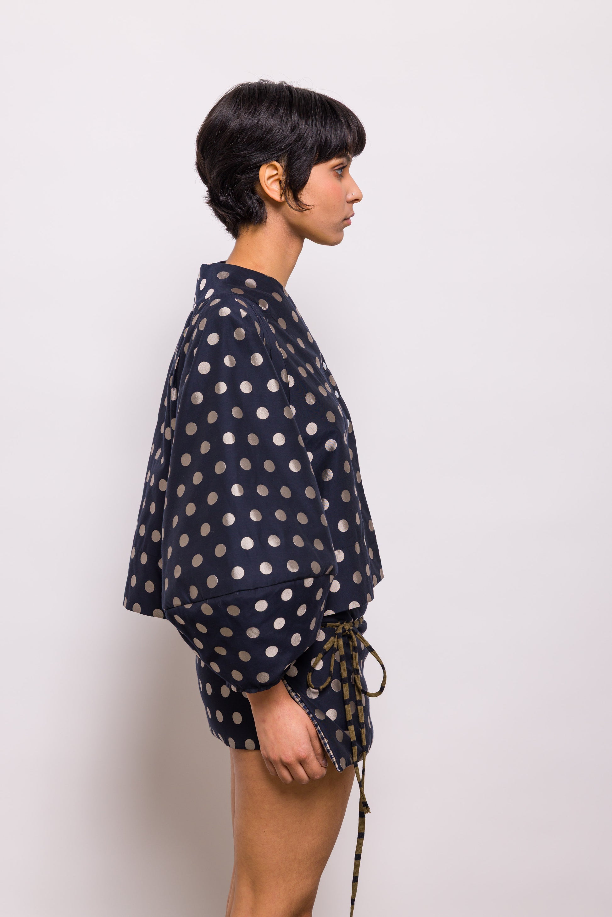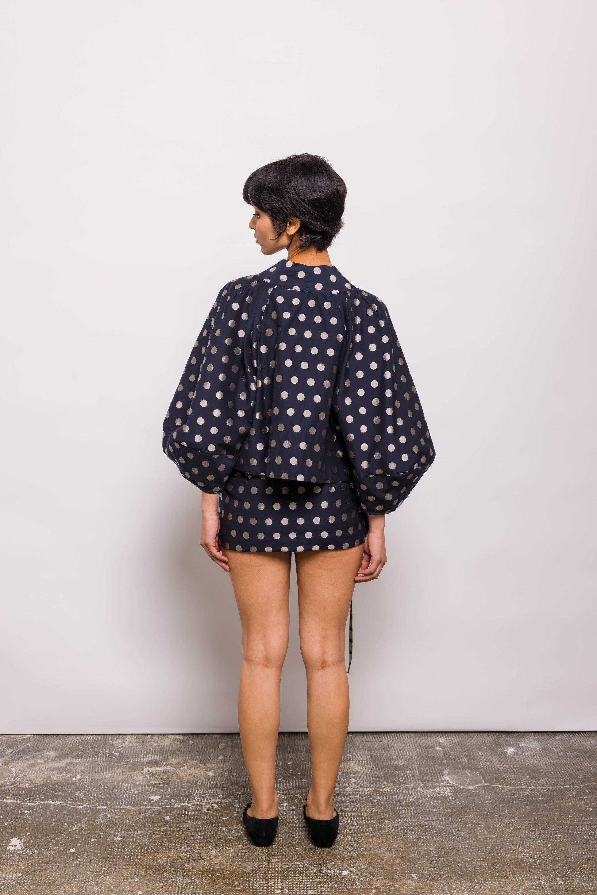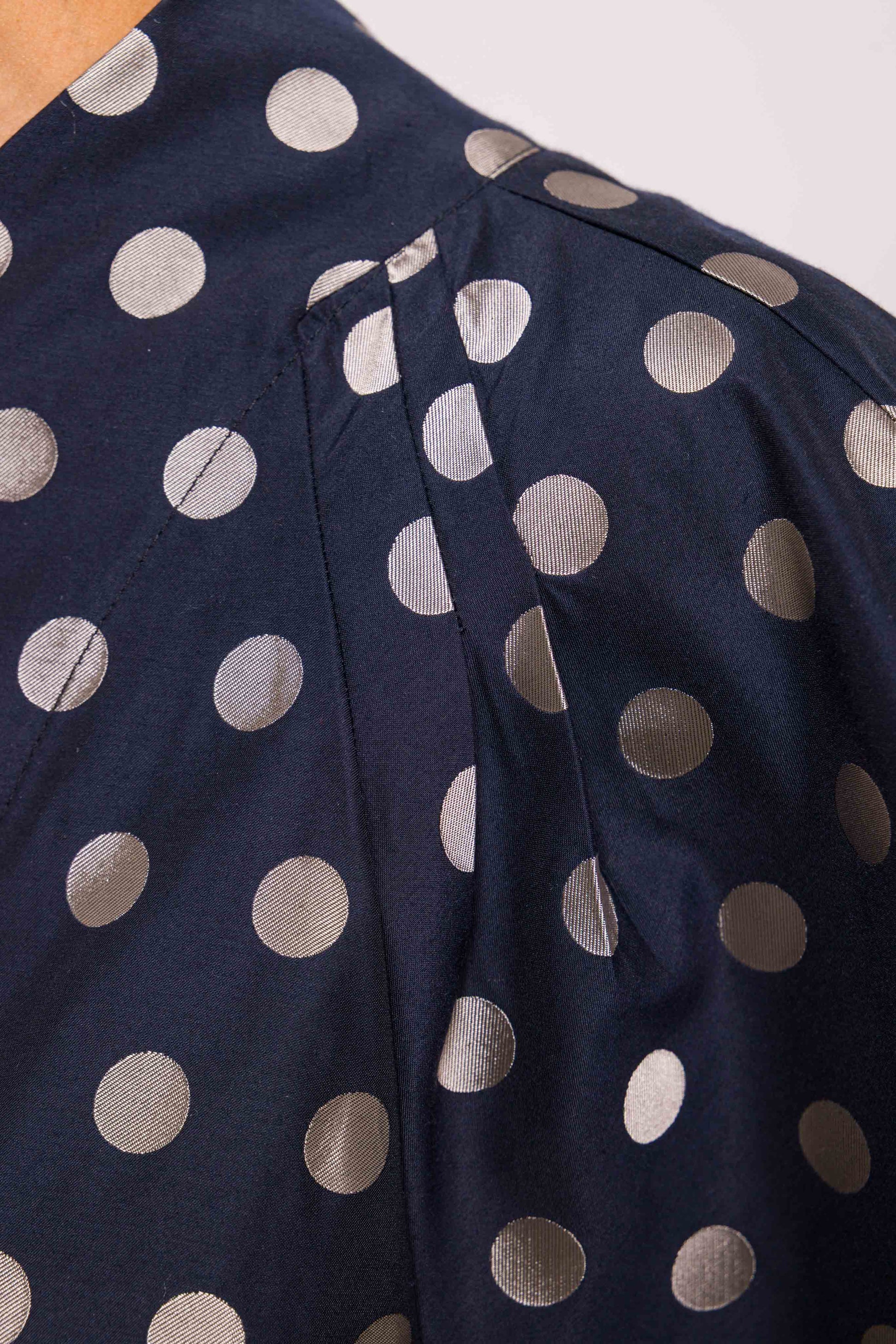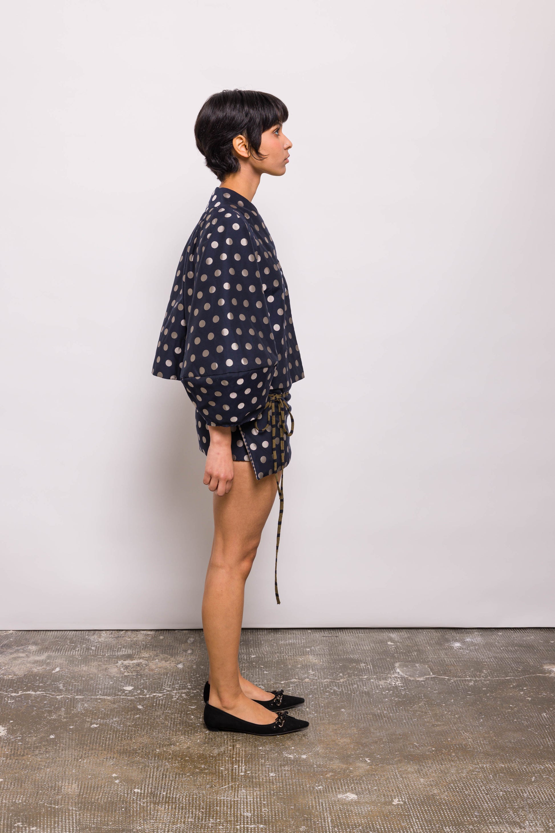 La veste Mathilde Marieve, courte et à manches oversized apporte un look ultra tendance. Pièce créateur par excellence, elle allie un joli jeu de plis et de pinces apporte une structure et un volume particulier à cette veste. Son encolure près du cou et son jacquard donnent de l'allure, 3 pressions nacrées permettent la fermeture.