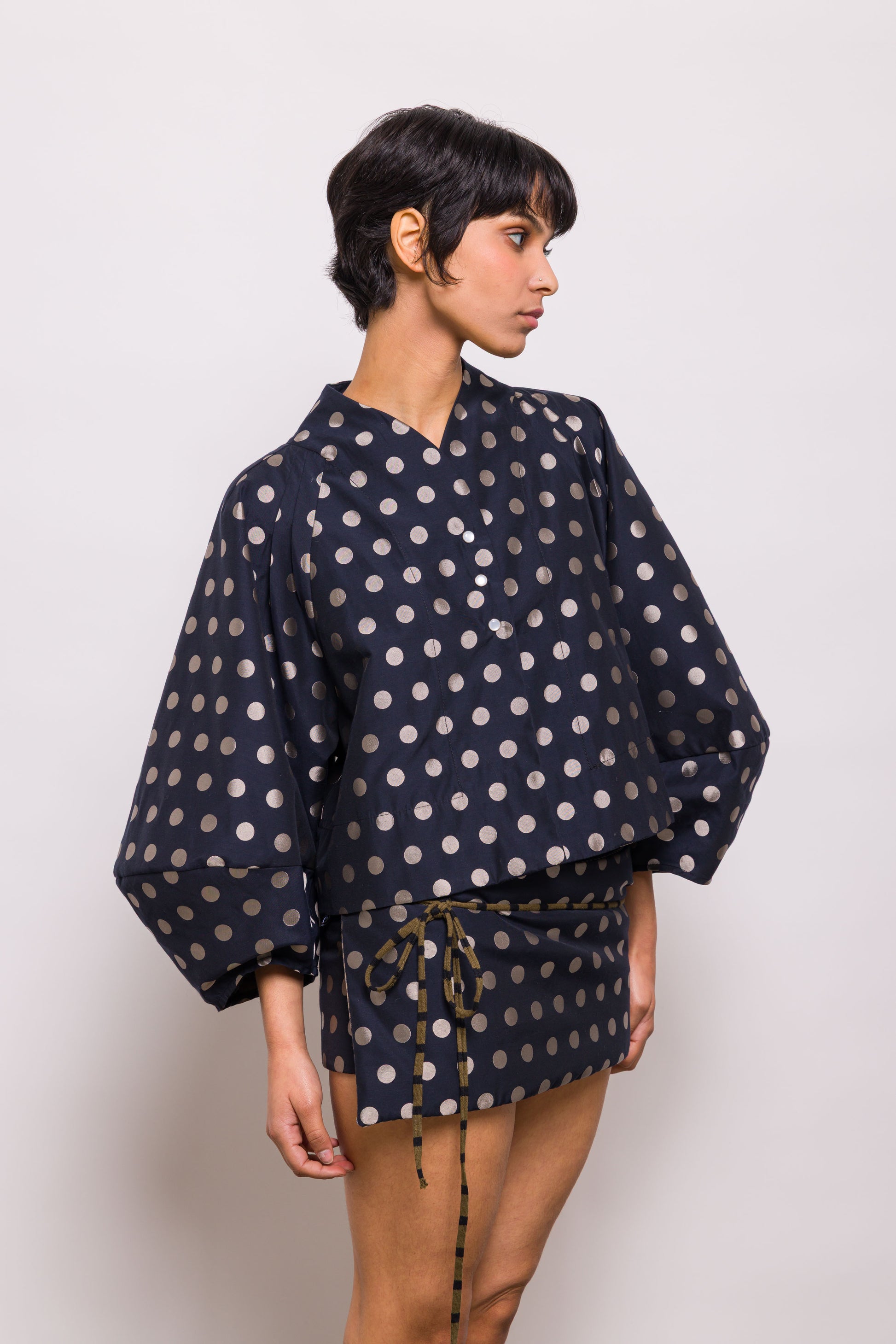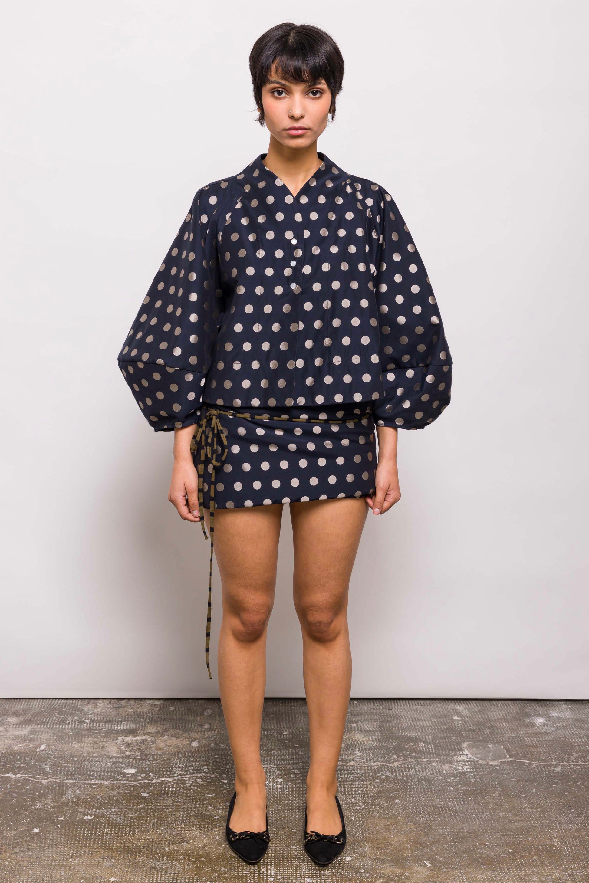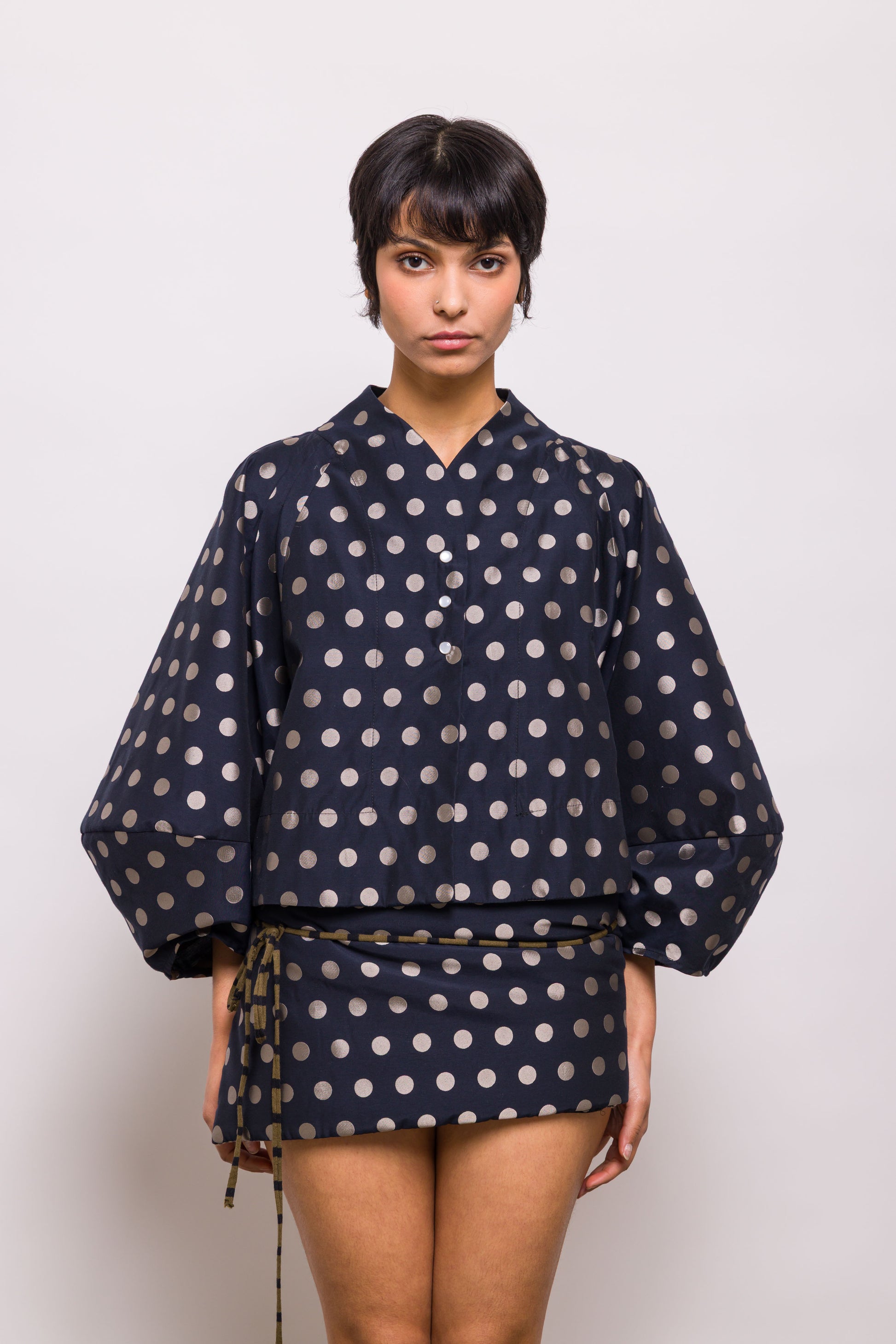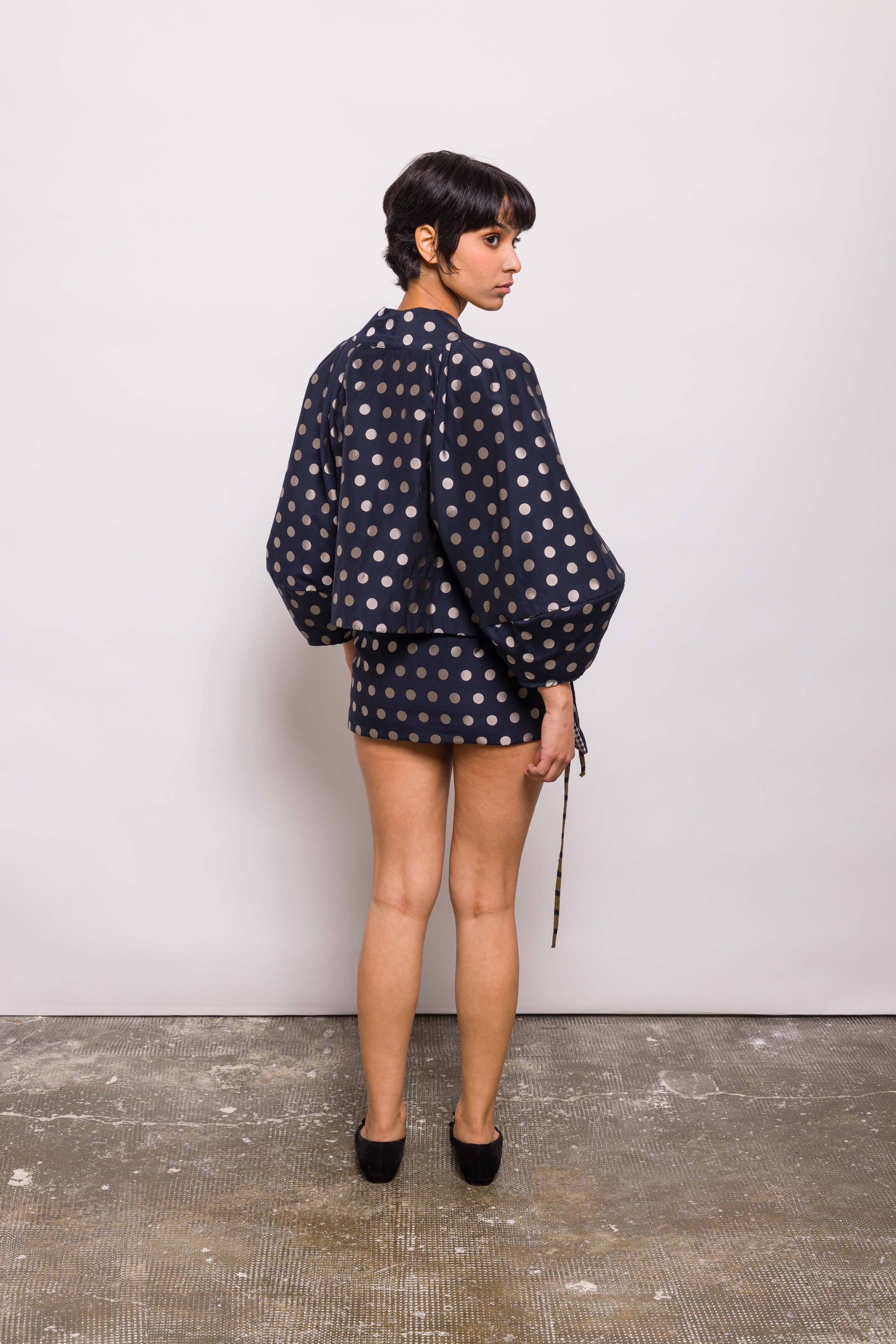 La veste Mathilde Marieve, courte et à manches oversized apporte un look ultra tendance. Pièce créateur par excellence, elle allie un joli jeu de plis et de pinces apporte une structure et un volume particulier à cette veste. Son encolure près du cou et son jacquard donnent de l'allure, 3 pressions nacrées permettent la fermeture.