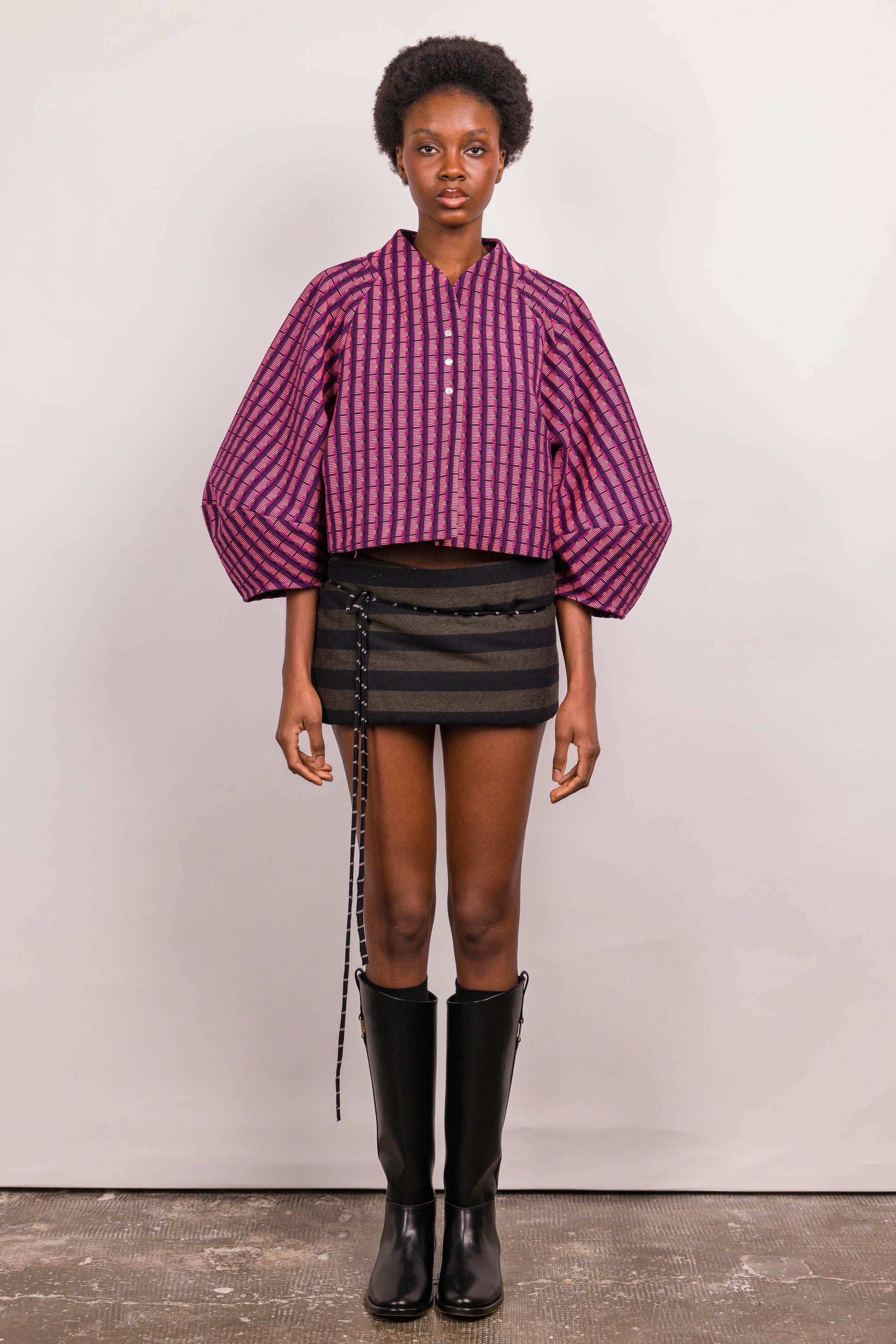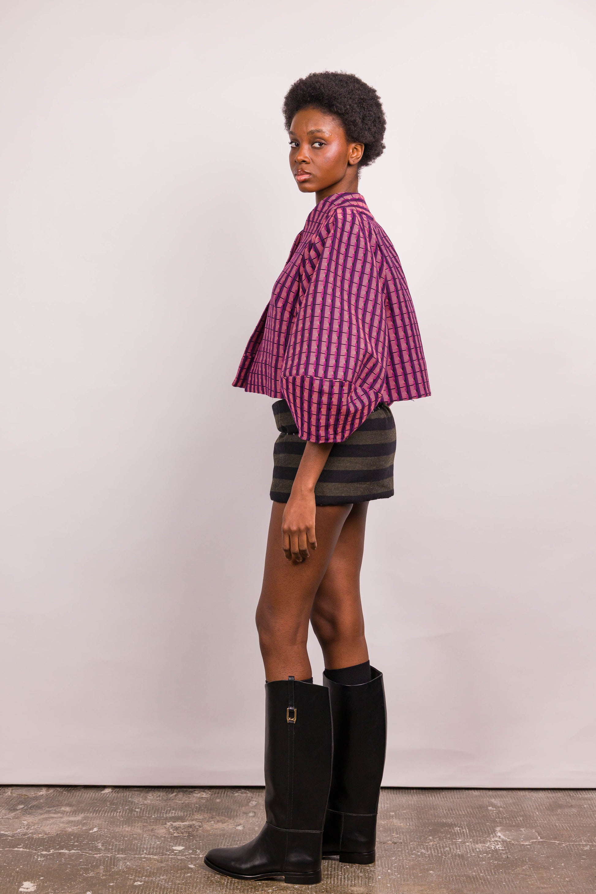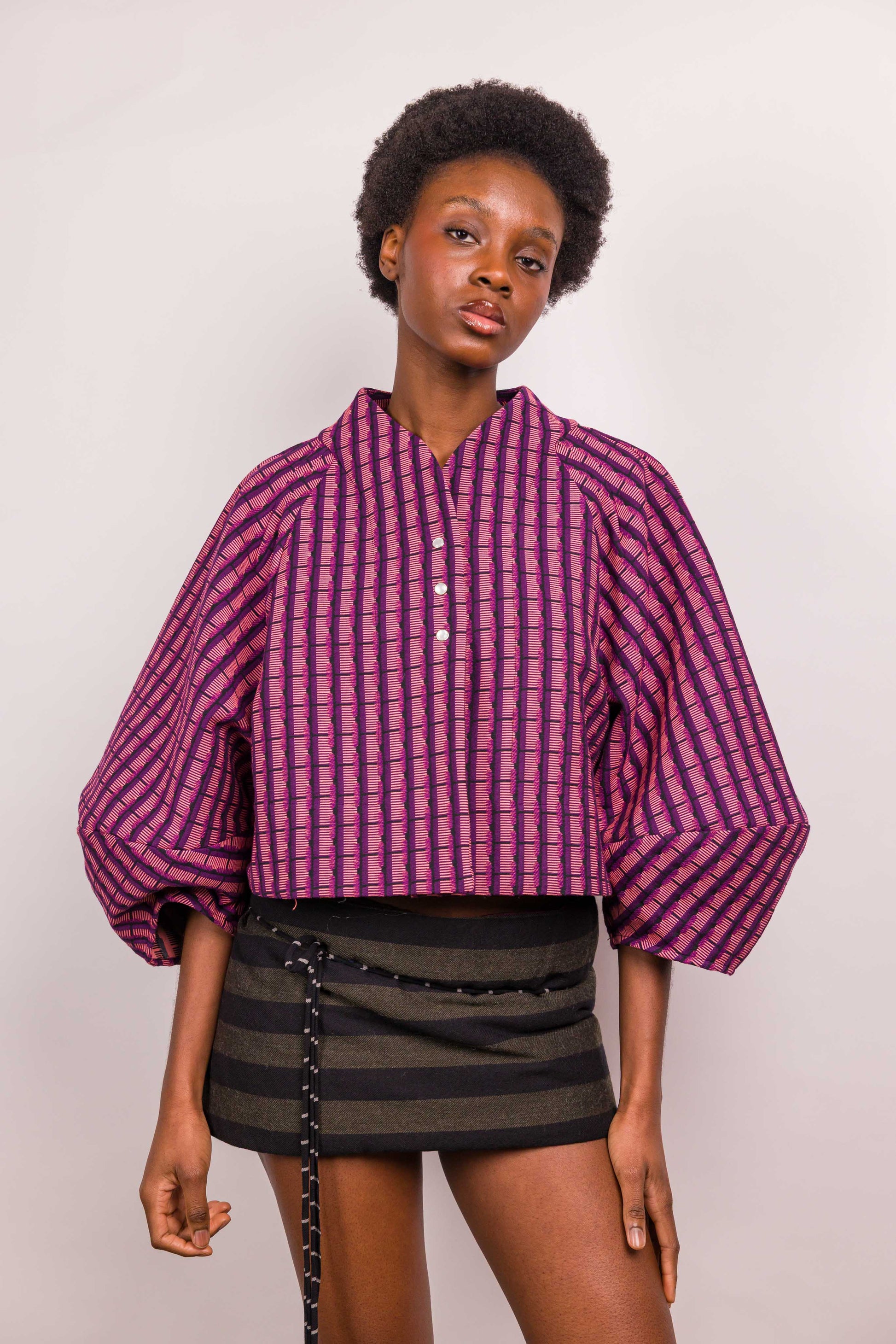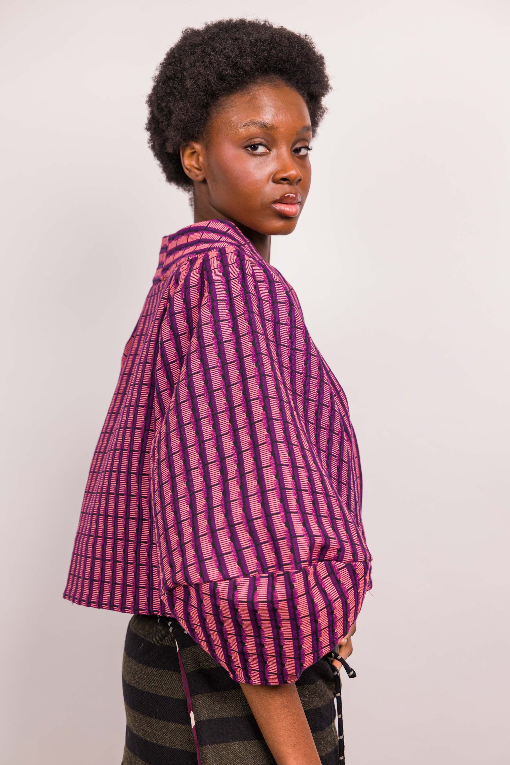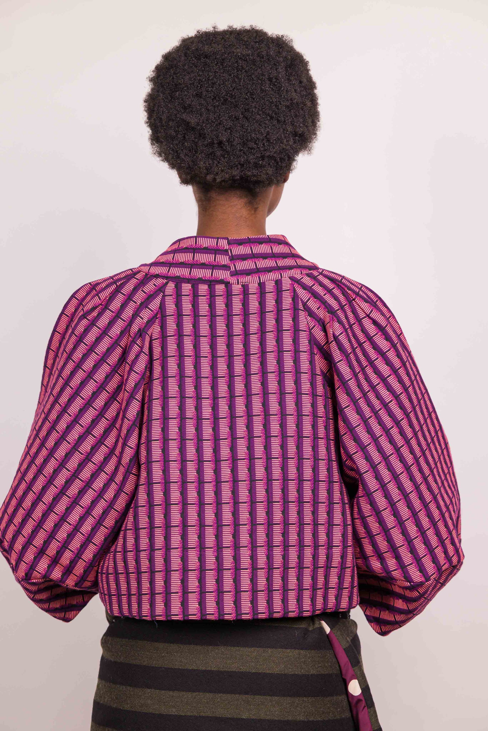 La veste Mathilde Marieve, courte et à manches oversized apporte un look ultra tendance. Pièce créateur par excellence, elle allie un joli jeu de plis et de pinces apporte une structure et un volume particulier à cette veste. Son encolure près du cou et son jacquard donnent de l'allure, 3 pressions nacrées permettent la fermeture.