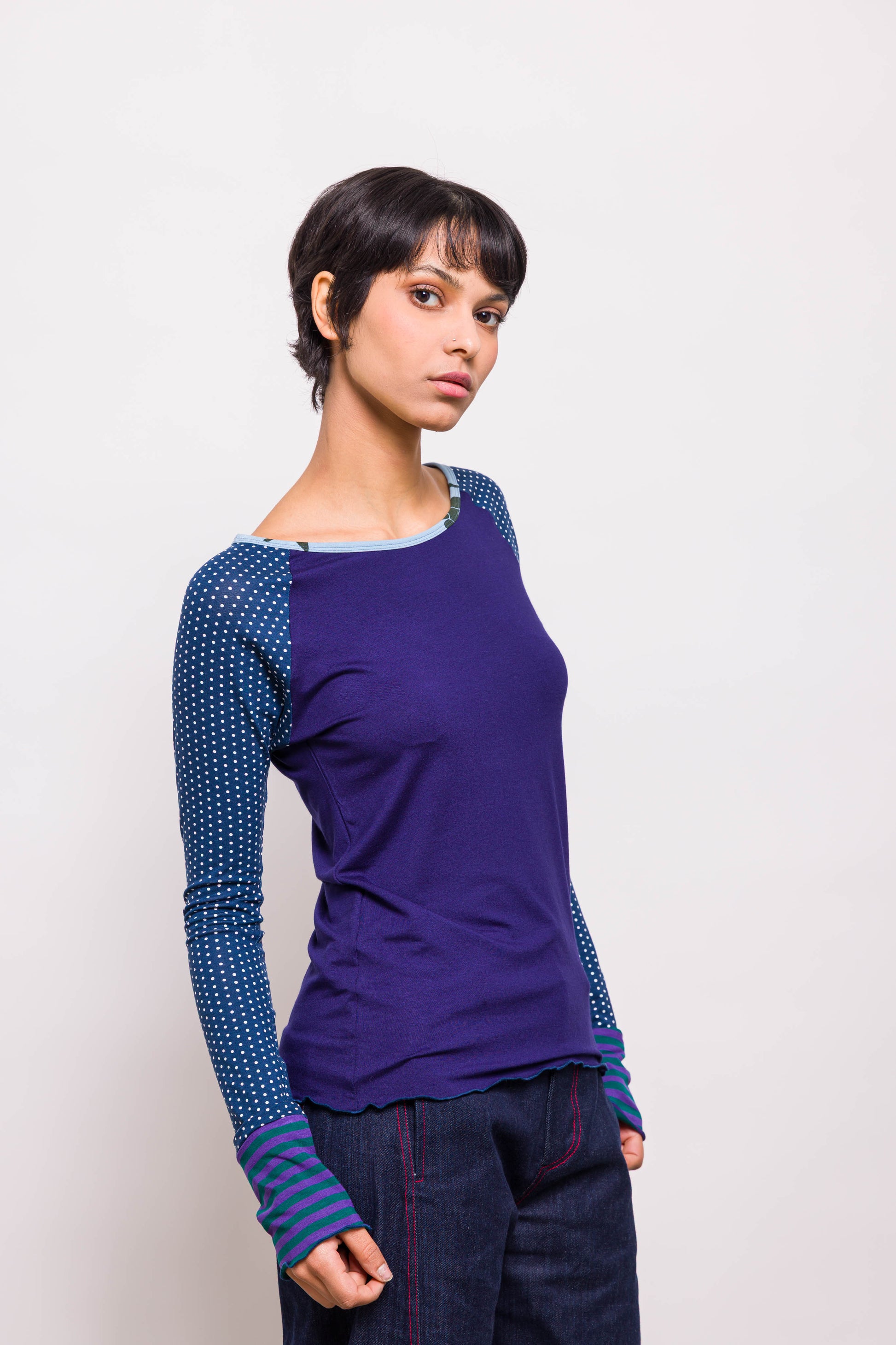 Classique chez Marieve, le tee shirt raglan se porte sur un jean pour un look créateur. Sous une tunique ou sur une jupe il apporte un peu de fantaisie et beaucoup de confort. Ses manches extra longues dépasseront de vos pulls et manteaux pour laisser apparaitre des motifs qui donneront de la couleur à vos tenues !